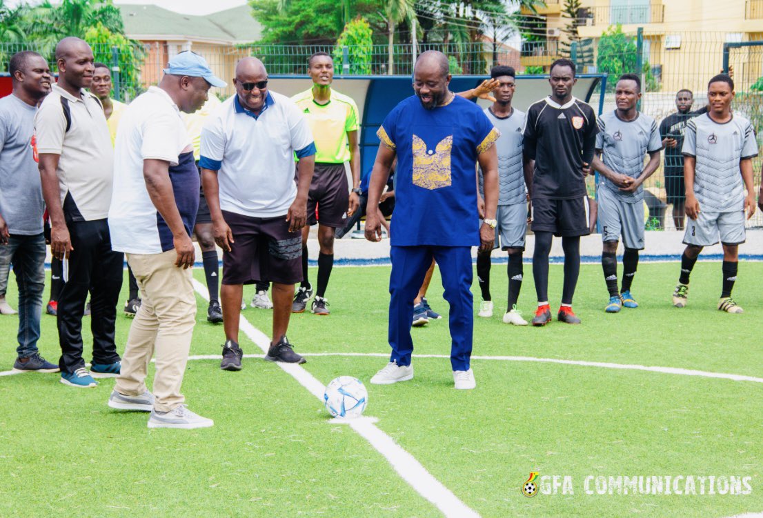 The directors of the GFA doing the honorary kick-off on matchday 1 of the Ghana Futsal Premier League. Source: GFA Communications